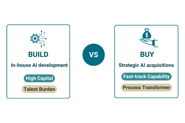 Deep investment in AI capabilities is becoming a competitive necessity; yet, for many historically successful mid-market firms, the capital and talent burden of developing in-house solutions is significant. The solution increasingly is strategic AI acquisitions - to buy rather than build. This has led to a surge of activity among firms seeking to fast-track AI capability acquisition.