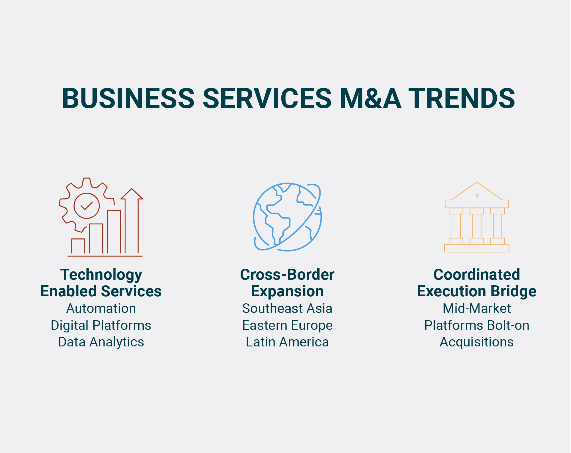 Buyers from North America and Western Europe are acquiring firms in Southeast Asia, Eastern Europe, and Latin America for cost efficiency and talent access.